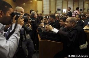 Мубарак и двое его сыновей обвиняются в коррупции, кроме того экс-президента и семерых начальников службы безопасности обвиняют в подстрекательстве, которое привело к гибели протестующих. Все подсудимые заявили о своей невиновности по обвинениям, выдвинутых против них.