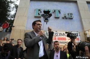 Работники ERT отказались покинуть офис в Афинах и продолжают вещание в режиме онлайн. Именно в интернет-эфире ERT лидер левой оппозиции Алексис Ципрас заявил, что решение консерваторов во главе с премьер-министром Антонисом Самарасом закрыть гостелерадио можно сравнить с государственным переворотом.