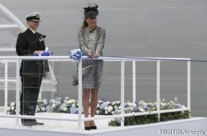 «Я нарекаю это судно Royal Princess, и да благословит Бог его и всех, кто будет совершать плавание на нем», – сказала Кейт. По традиции она перерезала ленточку и разбила бутылку шампанского о палубу судна. По окончании церемонии Кейт совершила небольшую экскурсию по судну, которое в середине лета отправится в свой первый средиземноморский круиз.