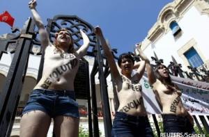 Там же эта акция увязывается с задержанием в Тунисе двух француженок и одной немки, которые в конце мая обнажили грудь в поддержку задержанной ранее неподалеку от главной тунисской мечети Амины Тайлер. Трёх активисток приговорили к 4 месяцам тюрьмы.