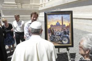 Папе Римскому Франциску подарили два мотоцикла, а также байкерскую кожаную куртку. Подарок приурочен к съезду мотоциклистов, который проходит в Риме с 14 по 16 июня, пишет ANSA. В столице Италии пройдет празднование 110-летия компании Harley Davidson.