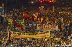 Антиправительственные демонстрации продолжаются в Бразилии последние две недели. Начались они с акций в Сан-Паулу, поводом для которых стало повышение стоимости проезда в общественном транспорте. После жесткого разгона этих акций к протестам присоединились и другие города страны.