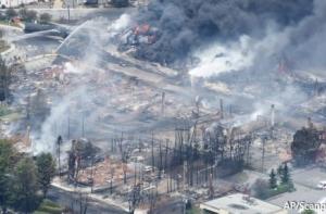 CBC передает, что огнем охвачен центр города. На помощь пожарным из Ляк-Межантика прибывают подкрепления из соседних городов и даже с территории США.