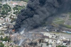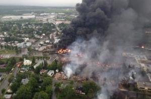Городок Ляк-Межантик с населением в 6000 человек расположен в 250 км к востоку от Монреаля. Состав, перевозивший сырую нефть, насчитывал 73 заполненных цистерны. Часть из них загорелась, раздалась серия взрывов. С места ЧП эвакуированы сотни людей. Столп огня видно с расстояния нескольких километров.