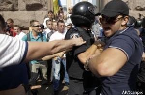 Однако некоторым все же удалось прорваться через оцепление. В результате в зал Киевсовета ворвались около 20 депутатов Верховной Рады, отмечает NEWSru.ua. Предводителем ворвавшихся оппозиционеров был лидер фракции «Батьковщина» Арсений Яценюк. Видимо, драка между политическими противниками завязалась не сразу.