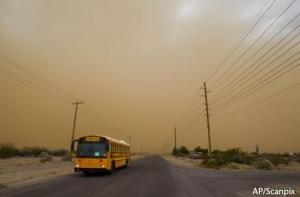 В городе Меса, штат Аризона из-за пыльной бури в аэропорту были задержаны некоторые рейсы, около 2 тысяч человек остались без света.