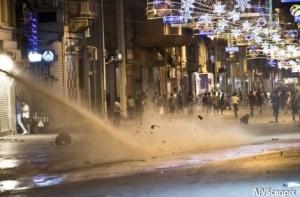 Для разгона демонстрантов полиция применила водометы, слезоточивый газ и резиновые пули. В Стамбуле протестующие пытались выйти на площадь Таксим, однако были остановлены в районе бульвара Истикляль.