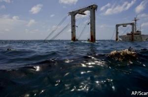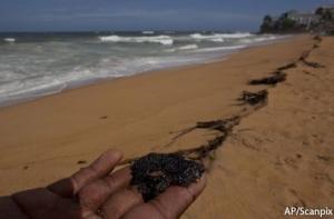 По данным местных властей, пятно загрязнения достигает пять километров в радиусе. Из-за сильного ветра черное пятно нефти быстро распространяется вдоль побережья, где расположены рыбные фермы.