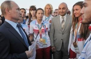 «Поздравляю вас с убедительной победой студенческой сборной России на Универсиаде в Казани», – сказал Путин на встрече с победителями и призерами Универсиады. Глава государства пожелал всем спортсменам новых успехов и красивых спортивных триумфов. «Мы живем в принципиально новых политических, социально-экономических условиях, но образование, культура и спорт являются чрезвычайно значимыми», – подчеркнул Путин.