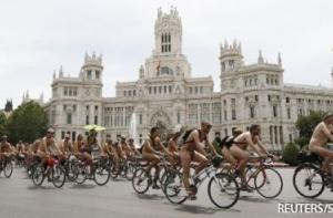 _Нудисты во время велопробега в Мадриде_