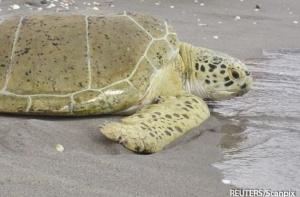 Логгерхед, или головастая морская черепаха обитает в Индийском, Атлантическом и Тихом океанах. Взрослые особи весят до 160 килограммов. Питаются эти черепахи губками, моллюсками, ракообразными, водорослями и рыбой. Логгерхеды занесены в Красную книгу, сбор яиц, которые прежде использовались в кулинарии, запрещен почти повсеместно в ареале распространения животных.