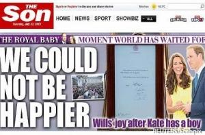 Крупнейший британский таблоид The Sun своеобразно отметил рождение первенца герцогини Кембриджской. Он сменил название на The Son.