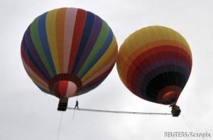 В одном из национальных парков, расположенных на юго-западе Китая, местный канатоходец по имени Аисикайер Вубуликасиму установил новый рекорд, пройдя между двумя воздушными шарами в воздухе.