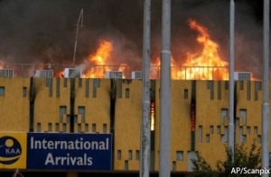 Корреспондент Би-би-си сообщает с места происшествия, что над терминалами прилета и вылета видны огромные языки пламени и сильный дым.