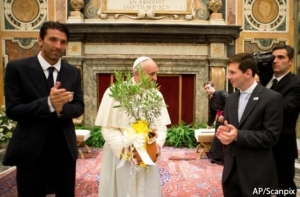 Знаменитый аргентинский футболист Лионель Месси преподнес Папе Римскому неожиданный подарок. В рамках товарищеского матча сборных Италии и Аргентины Месси вручил главе Католической церкви Франциску I оливковое дерево.