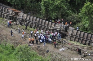 Причина, по которой поезд потерпел крушение, пока не известна. По некоторым данным, он набрал слишком большую скорость, причем в этот момент лил сильный дождь.