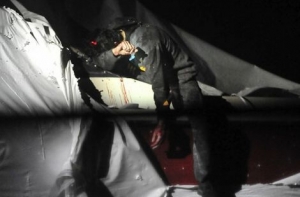 На новых снимках показан ход операции: оперативный штаб, полицейские, сотрудники спецслужб в полной боевой экипировке. Затем появляется обессиленный и окровавленный Царнаев. Из темноты его выхватывает луч прожектора. Он пытается выбраться из лодки, в которой прятался.
