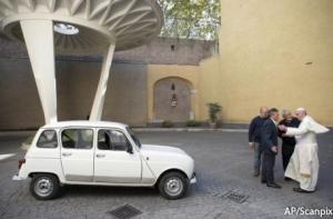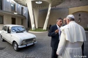Папа Римский обрадовался подарку и заявил, что у него когда-то был точно такой же Renault-4. После этого он сел за руль и поехал кататься. По словам отца Ренцо, охранники главы католической церкви были очень обеспокоены этим.