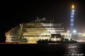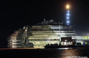 Операция по подъему Costa Concordia была начата 16 сентября в 09:00 по местному времени. Лайнер, лежавший на боку, при помощи кессонов был установлен в вертикальном положении. Следующим этапом операции станет доставка судна к месту утилизации.