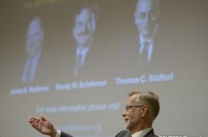 В Швеции объявлены имена лауреатов Нобелевской премии по физиологии или медицине за 2013 год. Награда присуждена ученым из США Джеймсу Ротману, Ренди Шекману, а также их коллеге из Германии Томасу Зюдофу.