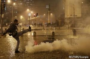 Кроме того, демонстранты подожгли автобус, вынесли из банковских зданий мебель и соорудили из нее баррикады.