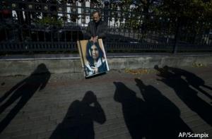 У здания Федеральной службы исполнения наказаний в Москве 2 ноября началась серия бессрочных пикетов, участники которых требуют от ведомства раскрыть местонахождение участницы группы Pussy Riot Надежды Толоконниковой. Фотографии с пикетов размещены в твиттере @gruppa_voina, который ведет муж осужденной Петр Верзилов.