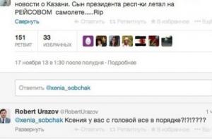 «Есть только одно хорошее(если так вообще можно говорить) в новости о Казани. Сын президента респ-ки летал на РЕЙСОВОМ самолете…», - так Собчак прокомментировала гибель сына президента Татарстана в авиакатастрофе.