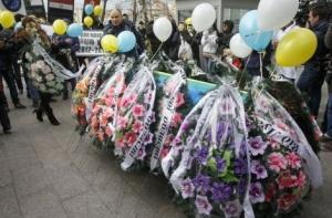 Процессия завершилась у здания представительства Евросоюза в Киеве. Гроб поставили на землю, а участники шествия возложили похоронные венки от всех регионов Украины и некоторых отраслей промышленности.