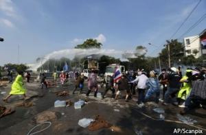 Силы безопасности обороняют Дом правительства в Бангкоке от оппозиционных демонстрантов, с утра возобновивших штурм здания, поливая их из водометных пушек смесью воды и слезоточивого газа. Такую тактику начали применять после того, как во время штурма 1 декабря этого года демонстранты начали подбирать шашки-канистры с газом с асфальта и перекидывать их обратно на позиции обороняющего Дом правительства смешанного военно-полицейского подразделения.