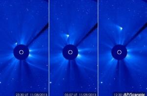В четверг, 28 ноября, эта комета первой из подобных небесных тел добралась до центра Солнечной системы и испарилась под влиянием тысячеградусного жара и радиации, лишив землян феерического шоу. За приближением кометы наблюдали несколько обсерваторий, но разглядеть, что именно произошло с ISON, не удалось.