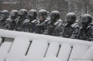 Майдан Незалежности окружили военнослужащие внутренних войск МВД Украины. Лидер оппозиционной партии «УДАР» Виталий Кличко вышел к бойцам, убеждая их не выполнять приказы командования.