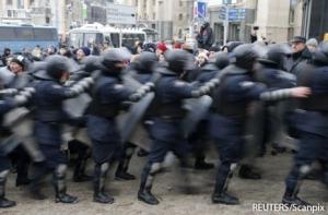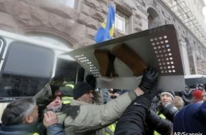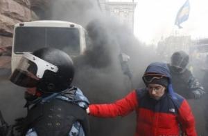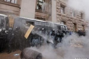 В Киеве бойцы спецподразделения «Беркут» и внутренних войск начали штурм здания Горсовета, которое сторонники оппозиции превратили в штаб восстания, передает РИА «Новости». Туда подъехали несколько автобусов со спецназом, военные в полном обмундировании попытались ворваться внутрь. Около автобусов, перегородивших входы, начали собираться митингующие. Из окон силовиков поливали водой из шлангов (сейчас в Киеве -7°С), а те в ответ применили слезоточивый газ.