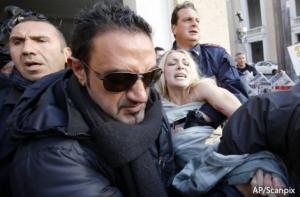 Полуголая девушка пыталась прорваться на площадь Святого Петра, но ее остановили полицейские. Как передают местные СМИ, стражи порядка окружили активистку, чтобы не дать журналистам сфотографировать ее. Тем не менее фотографии уже появились в интернете.