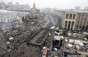 Киевский Майдан Незалежности оцеплен бойцами спецназа МВД Украины. Площадь заблокировали, чтобы не допустить противостояния в центре Киева митингующих оппозиционеров и сторонников правящей Партии регионов.