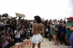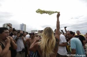 Поводом для акции протеста послужил неприятный инцидент, который случился в ноябре. Местная полиция арестовала бразильскую актрису Кристину Флорес, которая снималась на пляже в полуобнаженном виде для рекламы театральной постановки.