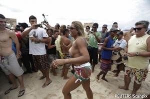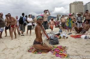 Тысячи жительниц бразильского города Рио-де-Жанейро оголились на местном пляже Ипанема. Тем самым они выразили свое возмущение законом, который запрещает женщинам загорать топлесс.