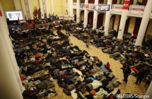 В здании мэрии Киева, которое с 1 декабря занимают участники евромайдана, было разграблено помещение, где хранились медали, грамоты и благодарности. Злоумышленники 5 января срезали замок с двери склада и вынесли пакеты с наградами.