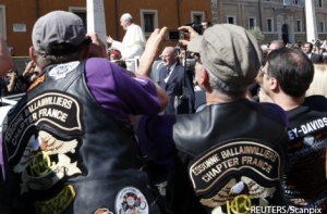 В июне прошлого года 35 тыс. байкеров съехались в Рим на мотоциклах Harley-Davidson в честь 110-летия известной марки. Понтифик благословил мотолюбителей, а те преподнесли ему в дар два ##мотоцикла##.
