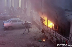 Участники акции протеста в Киеве, пытающиеся прорвать кордон на улице Грушевского, который преграждает им путь в правительственный квартал, сожгли милицейский автобус. Об этом сообщает УНИАН.