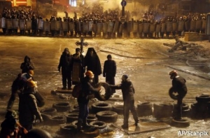 За ночь в украинской столице построено еще несколько баррикад, в том числе неподалеку от здания администрации президента, а также на улице Грушевского, где в среду были самые ожесточенные бои спецназа с демонстрантами.
