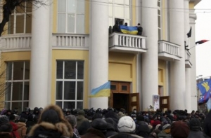 Группа демонстрантов захватила в субботу в Чернигове здание областной администрации, сообщает ИТАР-ТАСС.