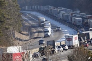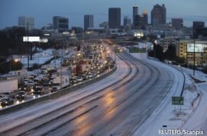 На юге США из-за снегопада тысячи человек провели ночь в своих застрявших на дорогах машинах или же во временных укрытиях в местных школах и церквях.