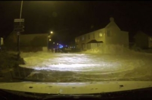С помощью камеры видеорегистратора автомобилисты смогли запечатлеть, как огромная война смыла с дороги постового.