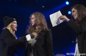 «Я имею честь представить вам поддерживаемых мной борцов за свободу Машу и Надю из Pussy Riot. Я восхищена их храбростью, их выдержкой во время заключения, их жертвой, принесенной во имя свободы самовыражения и прав человека», - заявила Мадонна.