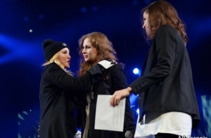 После этого певица под аплодисменты зала пригласила на сцену Марию Алехину и Надежду Толоконникову.