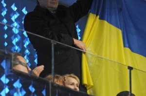 По данным очевидцев, присутствующих на открытии Олимпиады, при выходе украинской делегации Янукович поздравил спортсменов, завернувшись в национальный флаг и при этом размахивая им.