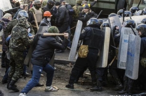 Как сообщают корреспонденты Украинской службы Би-би-си, на улицах Грушевского, Шелковичной и в Крепостном переулке в центре Киева горят машины, в то время как бойцы «Беркута» стреляют в демонстрантов резиновыми пулями и бросают светошумовые гранаты.