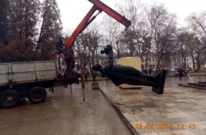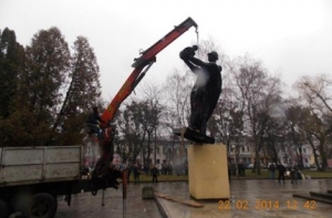 Кто принял решение о сносе памятника неясно. Издание lviv.at.ua называет это эпизодом борьбы с памятниками советской эпохи. Сообщения о сносе памятников Владимиру Ленину за последние дни поступили из десятков городов Украины. С поверженными памятниками обычно обращаются не так бережно: часто Ленина раскалывают на куски и растаскивают на сувениры.