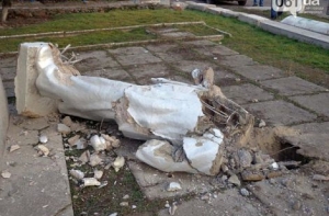 В Львовской области Украины демонтировали памятник советскому воину. Произошло это в районном центре Стрый накануне. Скульптуру - солдата, который держит на руках ребенка - сняли с постамента накануне с помощью автокрана.