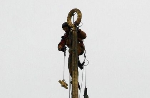 В конце 2013 года убрать символ СССР со шпиля Верховной Рады потребовал депутат от фракции «Батькивщина» Александр Бригинец. Тогдашнее руководство парламента заявило, что демонтаж возможен только по согласованию с профильными инстанциями.